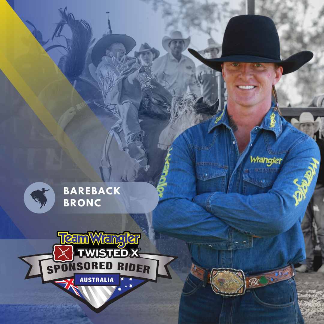 Born and raised in Mount Isa, Clayton is certainly at the top of his game in the Saddle Bronc riding industry. He resides in North Queensland, where he lives and works on a cattle station with his wife Kaili and their children.