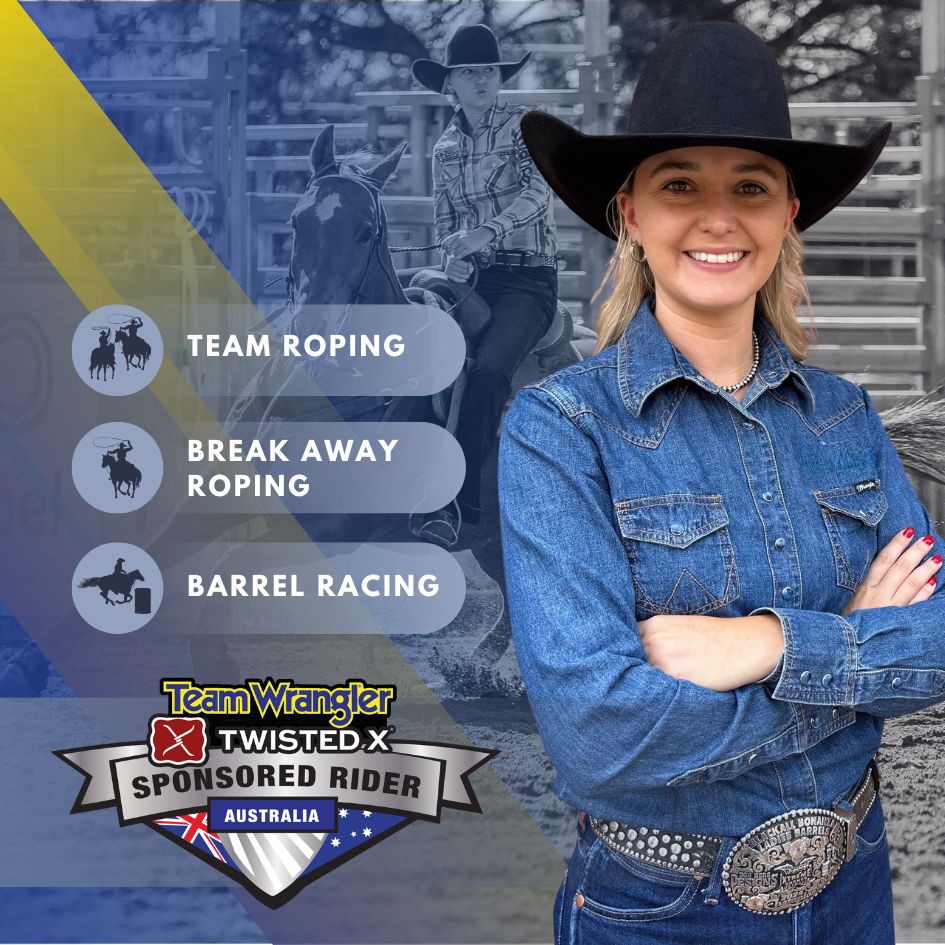 The mother of two resides in Bloomsbury QLD with the partner, where they run a hay farming business. Farming is not only a passion but a way of life and rodeoing on the weekends is the icing on the cake. Dakota specializes in Breakaway Roping & Barrel Racing; she was an APRA National Final Rodeo qualifier in 2023. Dakota has been rodeoing since she was 5 years old and a former APRA Miss Rodeo Australia 2018 and one of the leading APRA All Round Cowgirls.